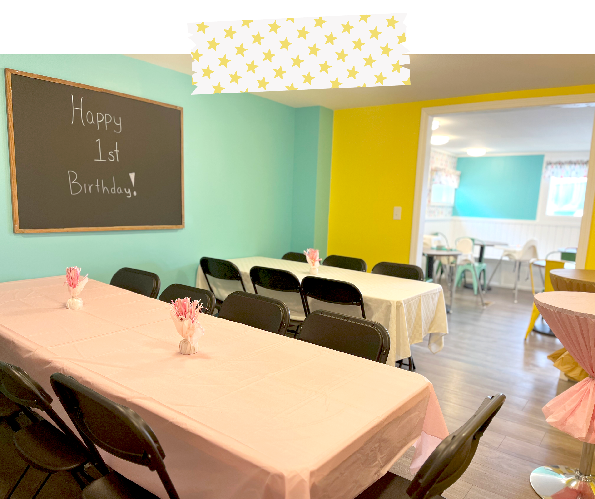 Our cafe is perfect for celebrating baby showers, gender reveals, and first birthday. Ideal for hassle free entertaining!